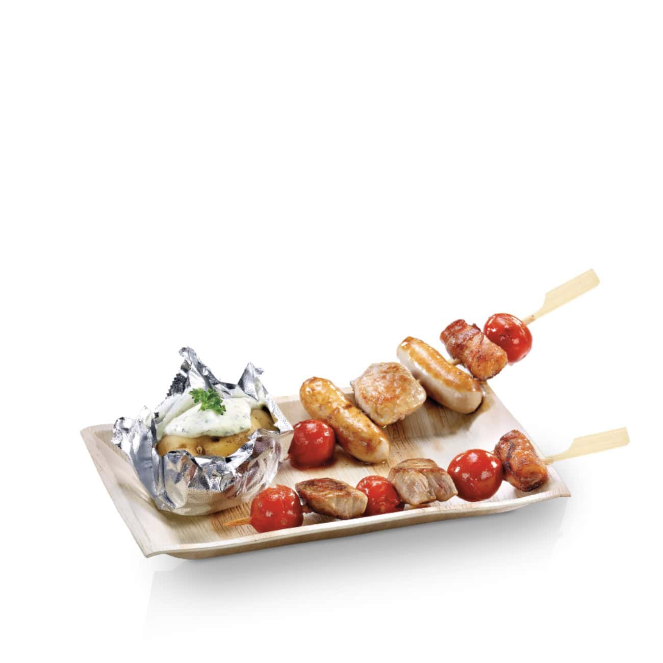Bamboe golfprikkers zijn gemaakt van de stevige en snelgroeiende bamboe plant. Bamboe golfprikker 18cm is een milieuvriendelijk alternatief voor plastic cocktailprikkers. Satéprikkers van bamboe zijn stevig, glad en geschikt voor warme en koude toepassingen. Bamboe is een functioneel, duurzaam materiaal met een prettig mondgevoel en een natuurlijke uitstraling. Onze wegwerp prikkers van bamboe zijn ideaal voor de presentatie van uw saté, sashlick en burgers op partijen, BBQ’s, walking diners en buitenevenementen. Gebruik de bamboe golfprikker 18cm voor het rijgen van saté of het bij elkaar houden van een burger. Combineer prikkers van bamboe met onze bamboe borden.