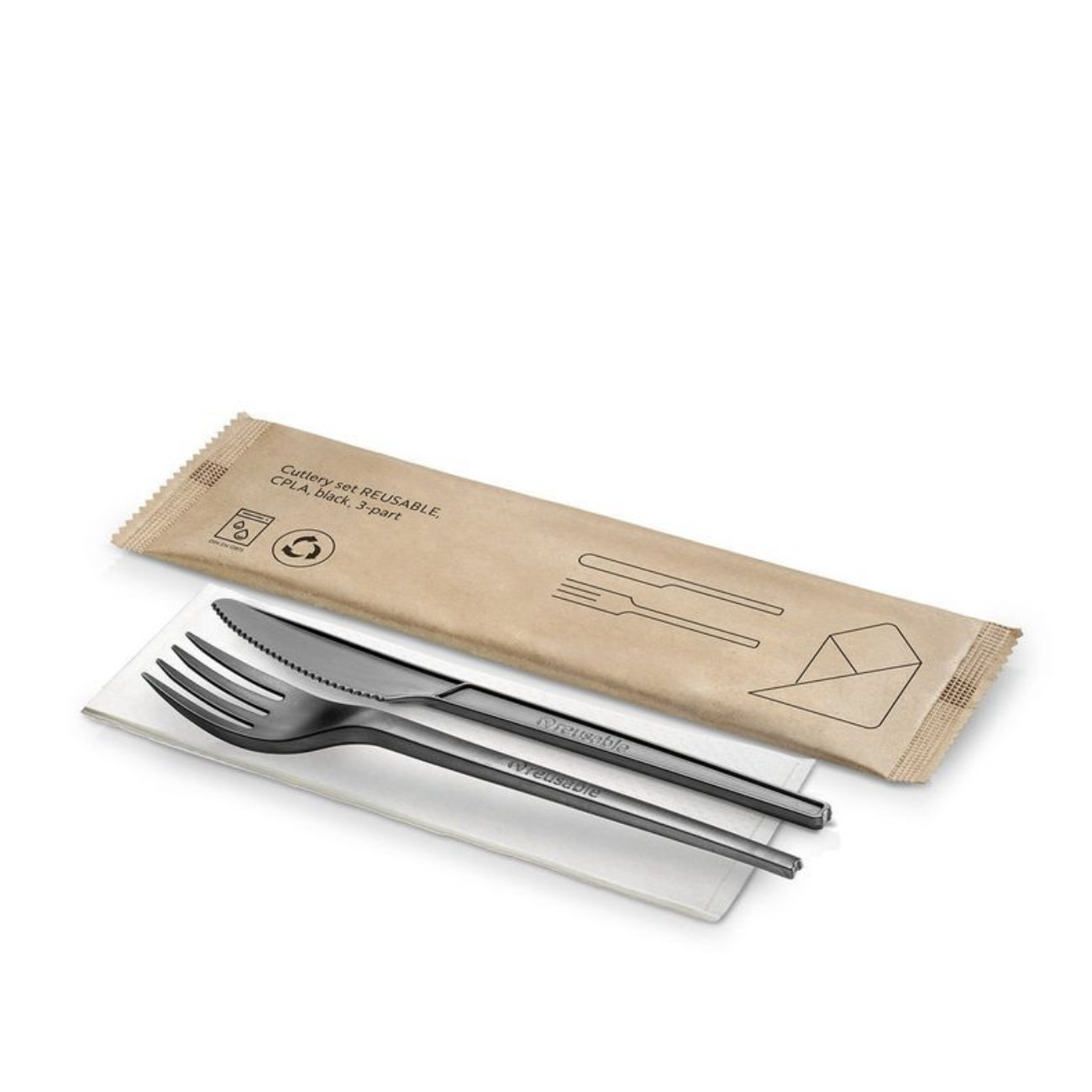 CPLA besteksets van afbreekbaar plastic zijn een milieuvriendelijk alternatief voor besteksetjes van fossiel plastic. De bioplastic bestekset bevat een mes/vork en servet. Het bestek is stevig, glad en geschikt voor warme en koude toepassingen. Een zeer functioneel, duurzaam wegwerpbestek met een prettig mondgevoel en een luxe uitstraling. Ons wegwerpbestek van CPLA is tevens vaatwasbestendig en voldoet aan de Europese norm EN12875. Duurzame besteksetjes van CPLA zijn ideaal voor partijen, walking diners, buitenevenementen en bedrijfskantines.