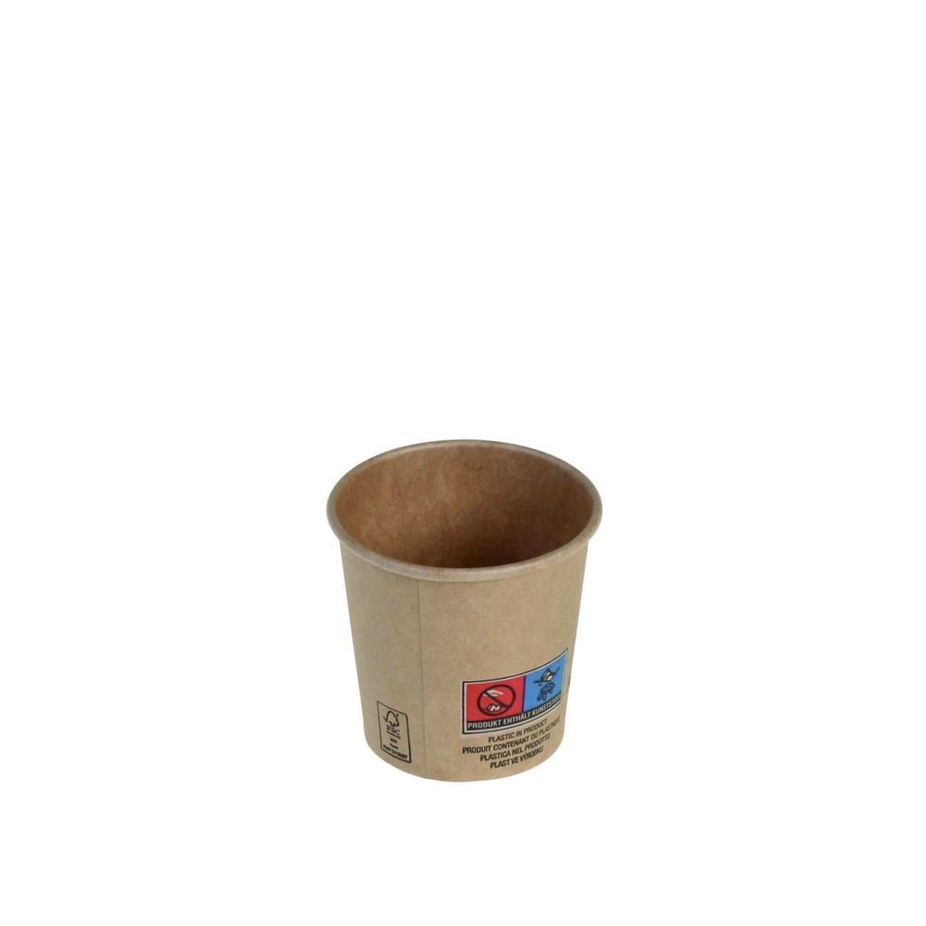 Serveer uw espresso in een beker die niet alleen praktisch is, maar ook uitstraling heeft. Deze kraft karton koffiebeker 4oz combineert een stoere, natuurlijke look met de betrouwbaarheid die je in de horeca nodig hebt. Ze zijn stevig, lekvrij en voelen prettig in de hand. Met hun duurzame uitstraling passen ze perfect bij trendy koffiebars, ijssalons en to-go concepten. Combineer met een passend deksel en uw drankjes zijn klaar om veilig meegenomen te worden. Bekijk ook onze bijpassende houten roerstaafjes.