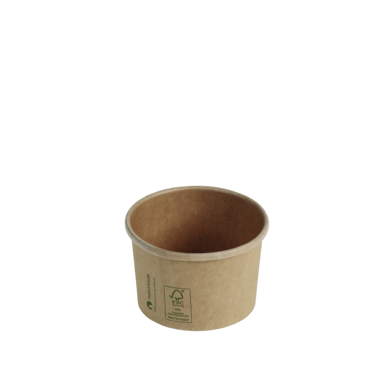 De FSC® kraft soepbekers kunnen uitstekend worden gebruikt voor directe consumptie of take away van soep. De kraft soepbeker karton 240ml is stevig en heeft een isolerende functie. Kraft soepbekers zijn afsluitbaar met een goed sluitende, dubbelwandige kartonnen deksel of een doorzichtige plastic deksel. Beide deksels hebben een ventil zodat de condens kan ontsnappen zonder veel warmte te verliezen. Onze soepbeker karton 240ml is ook verkrijgbaar in de formaten 360ml, 480ml, 780ml en 960ml. Combineer onze soepbekers van karton met herbruikbare lepels en papieren tassen!