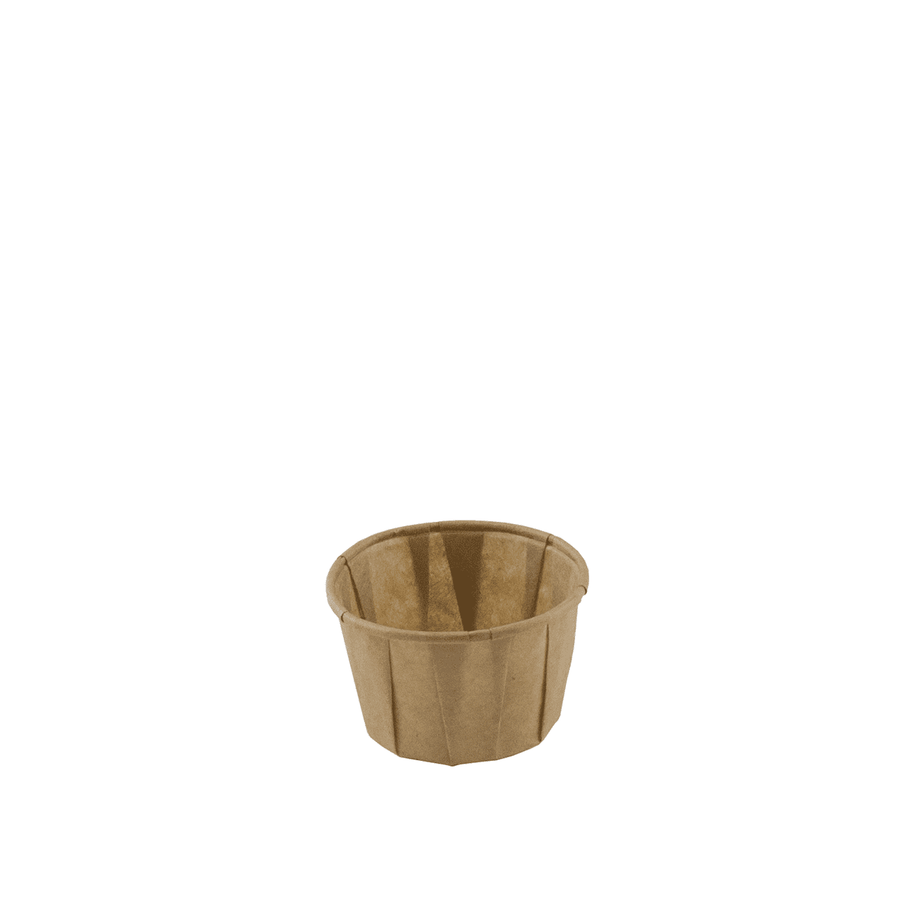 FSC® papieren sausbakje 37ml bruin is perfect voor het serveren van uw sauzen, tapenades en dips. Souffle cups van papier zijn ideaal voor de presentatie van vloeibare sauzen. Duurzame sausbakjes van papier hebben daarnaast een ambachtelijke, natuurlijke uitstraling en zijn een milieuvriendelijk alternatief voor plastic sausbakjes. Papieren souffle cups komen tot hun recht op alle soorten borden en planken! Het papieren sausbakje 37ml bruin is geschikt voor een kleine portie mayonaise, ketchup, chilisaus, mosterd of andere soorten saus.