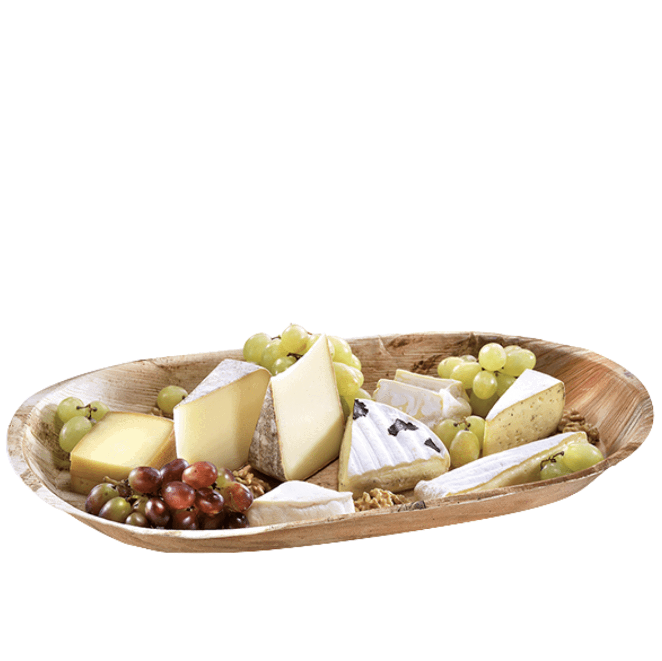 Palmblad cateringschalen zijn ideaal voor de presentatie en transport van uw borrelhapjes, amuses en sandwiches. Ze zijn zeer stevig en daardoor gemakkelijk in gebruik en perfect voor transport. Cateringschalen van palmblad hebben een prachtige, natuurlijke uitstraling. Iedere schaal is uniek en heeft zijn eigen natuurlijke motief. De palmblad cateringschaal 55x31x4cm is perfect voor de presentatie van verse belegde broodjes of hapjes, amuses en andere lekkernijen. Gebruik bij het opmaken van salades die nog een tijdje de koeling in gaan eerst een vochtbestendig wikkelpapier. Palmblad cateringschalen lijken geschikt om af te wassen maar zijn uitsluitend geschikt voor eenmalig gebruik. Gebruik de palmblad cateringschaal groot in combinatie met bijpassende kraft cateringdozen. Zo bent u onderscheidend qua presentatie en duurzaam bezig!