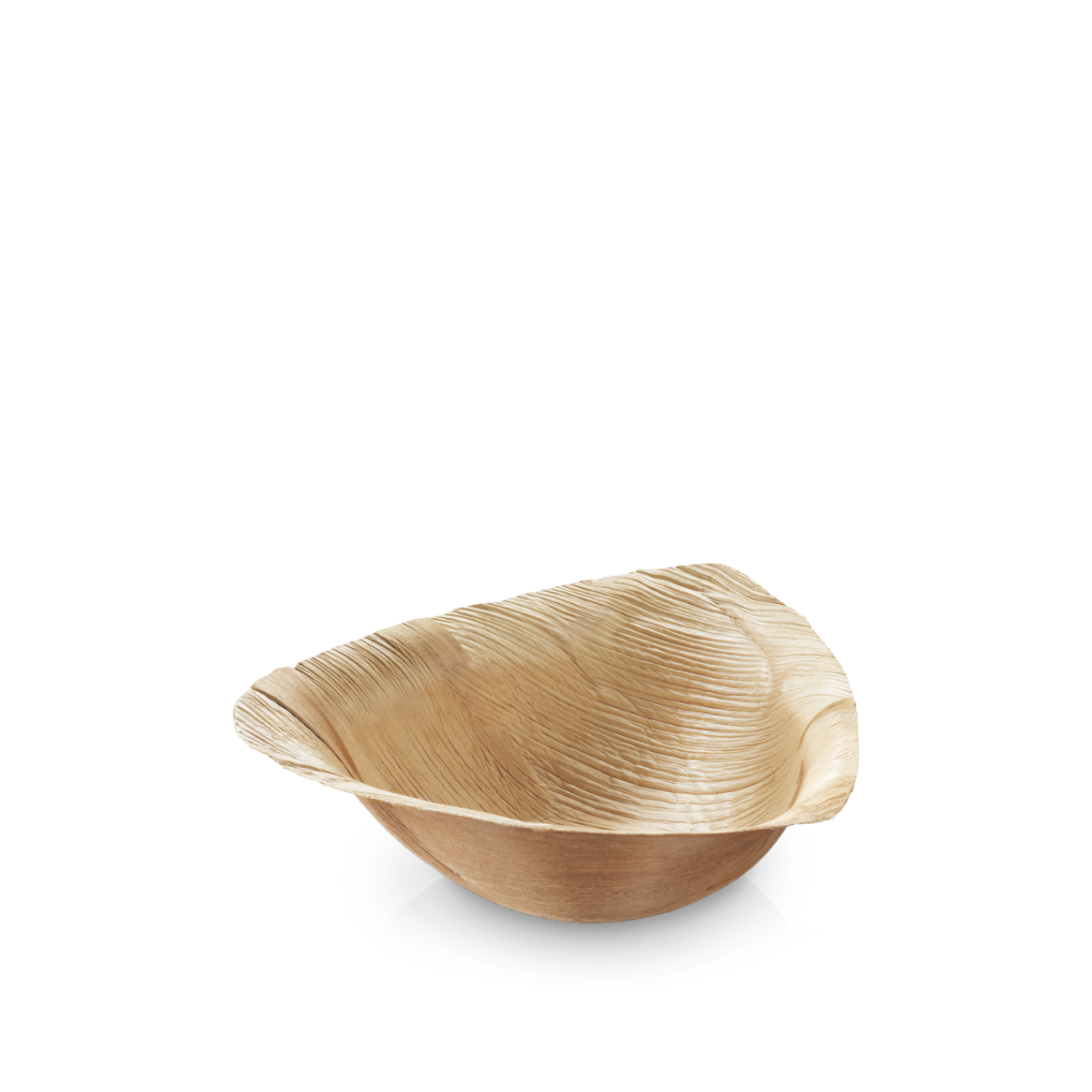 Palmblad kommen zijn ideaal voor gebruik tijdens een bbq, evenement en walking diner. Kommen van palmblad hebben een prachtige, natuurlijke uitstraling. Iedere palmblad kom is uniek en heeft zijn eigen natuurlijke motief. De palmblad kom trigon 300ml is perfect voor de presentatie van broodjes, smoothiebowls, maaltijdsalades en bittergarnituur. Palmblad kommen lijken geschikt om af te wassen maar zijn uitsluitend geschikt voor eenmalig gebruik. Gebruik palmblad kom trigon 300ml in combinatie met bijpassende sausbakjes van palmblad. Zo bent u zeker van uw plastic-vrije presentatie en voldoet u aan de SUP-wetgeving. Ook kunt u de palmblad kommetjes gebruiken in combinatie met onze FSC® recycled servetten gemaakt van 100% gerecycled, ongebleekt papier.