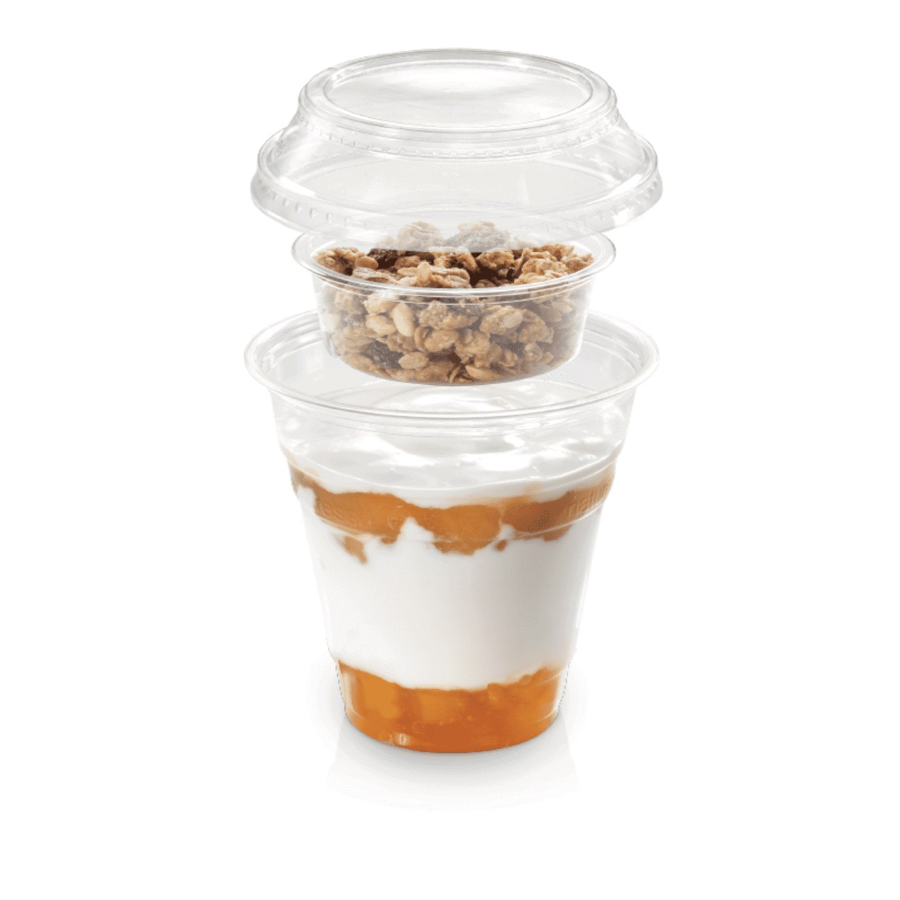 PLA inzetbakjes voor dessert bekers zijn ideaal voor de presentatie van uw toppings zoals granola, noten of cruesli. Door het glasheldere materiaal is de inhoud goed zichtbaar wat PLA dessertbekers uitermate geschikt maakt voor presentatie in koelvitrines. De inzetbakjes klikken vast in de push & click deksel en sluiten goed af. Producten van PLA zijn uitsluitend geschikt voor koude toepassingen.
