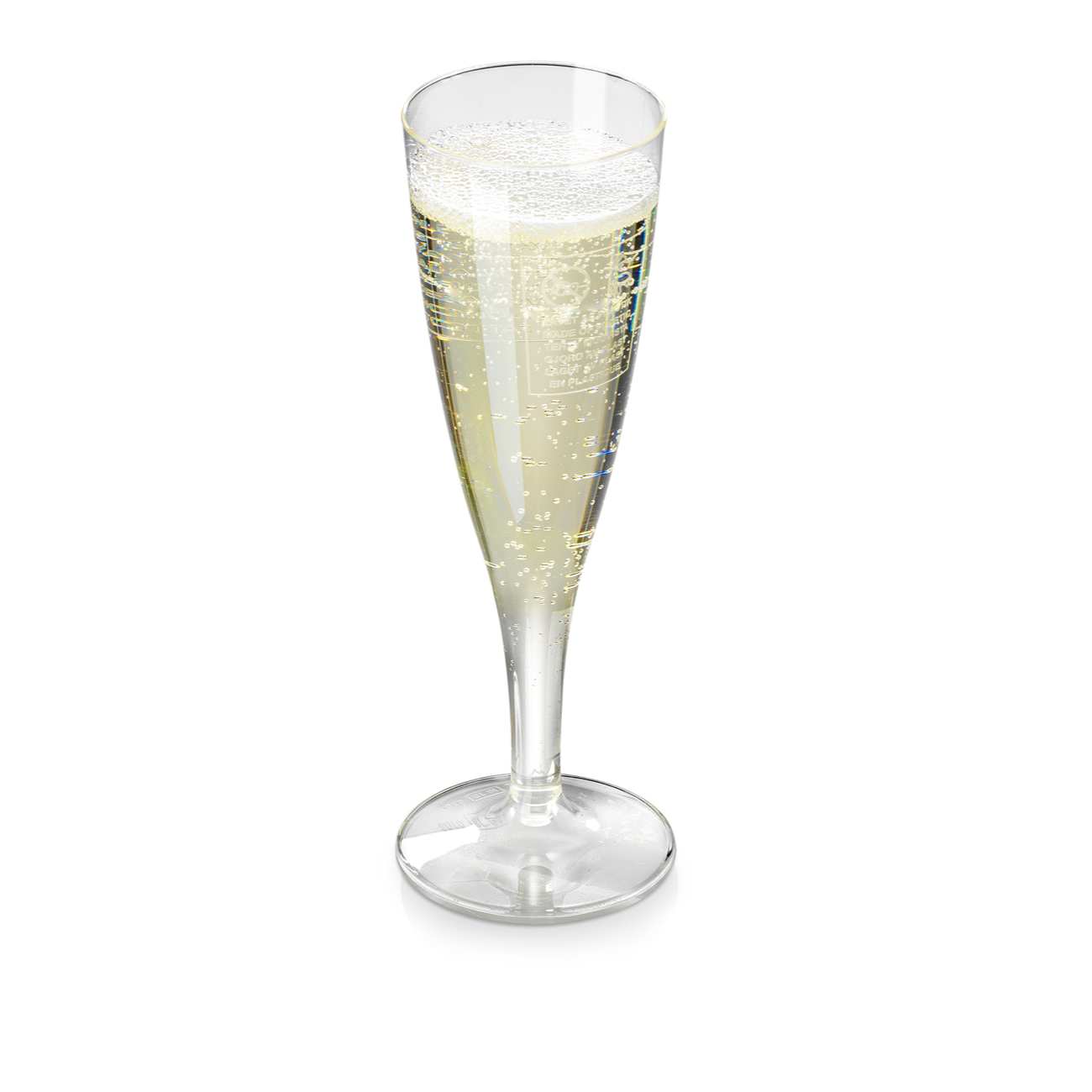 Een primeur! De eerste champagne flutes gemaakt van de hernieuwbare grondstof PLA! Wegwerp champagne glazen zijn ideaal voor het serveren van alle soorten dranken bij evenementen, beurzen en proeverijen. Door het glasheldere materiaal is de inhoud goed zichtbaar. Champagne glazen van PLA zijn uitsluitend geschikt voor koude toepassingen. De PLA champagne flute 100ml wordt vaak gebruikt voor champagne en andere alcoholische dranken bij feesten en partijen. Combineer PLA champagne glas 100ml met onze duurzame borden en bestek!