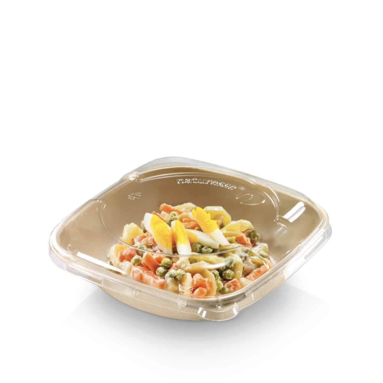 PLA deksels voor maaltijdbowls zijn glashelder, sluiten goed en hebben een anti-condens werking. Ideaal voor presentatie van koelverse salades en gerechten vanuit koelvitrines. De wegwerp maaltijdbowls zijn geschikt voor directe takeaway en geschikt voor gebruik in de oven, magnetron en vriezer. Maaltijdbowls van suikerriet hebben een beperkte vocht- en vetbestendigheid.