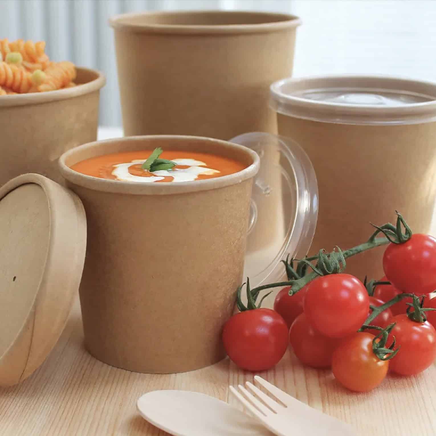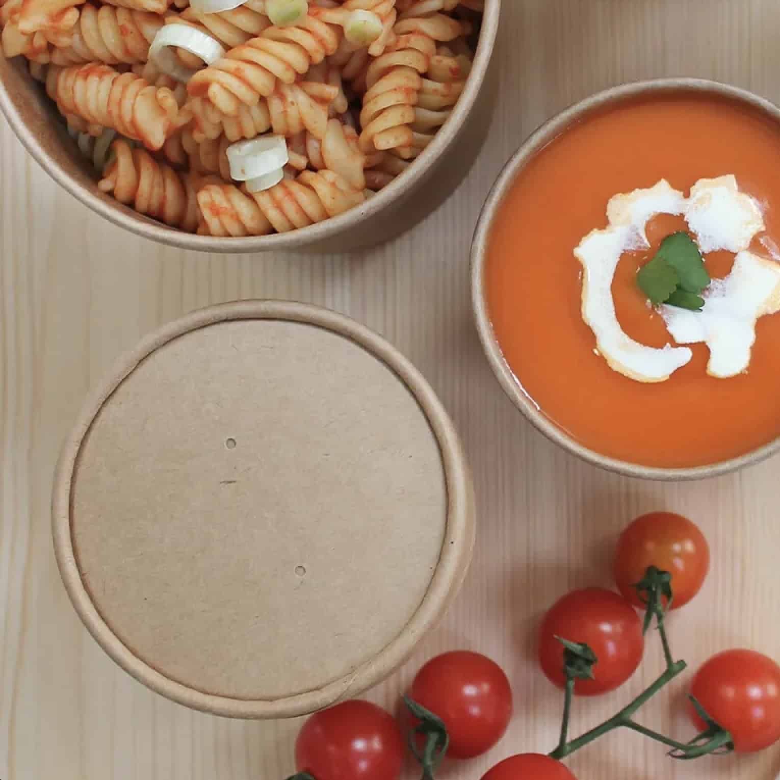 Kartonnen soepbekers zijn geschikt voor take away. Soepbekers van karton mogen worden verstrekt voor eenmalig gebruik, bij consumptie op locatie en voor take away. Onze kraft soepbeker karton 360ml is geschikt voor het serveren van kleine warme gerechten zoals traditionele soep, noodle soep of pasta’s. Ook kunnen de soepbekers worden gebruikt voor het verpakken en invriezen van ijs. De bekers zijn te voorzien van deksels wat de soepbekers uitermate geschikt maakt voor takeaway.