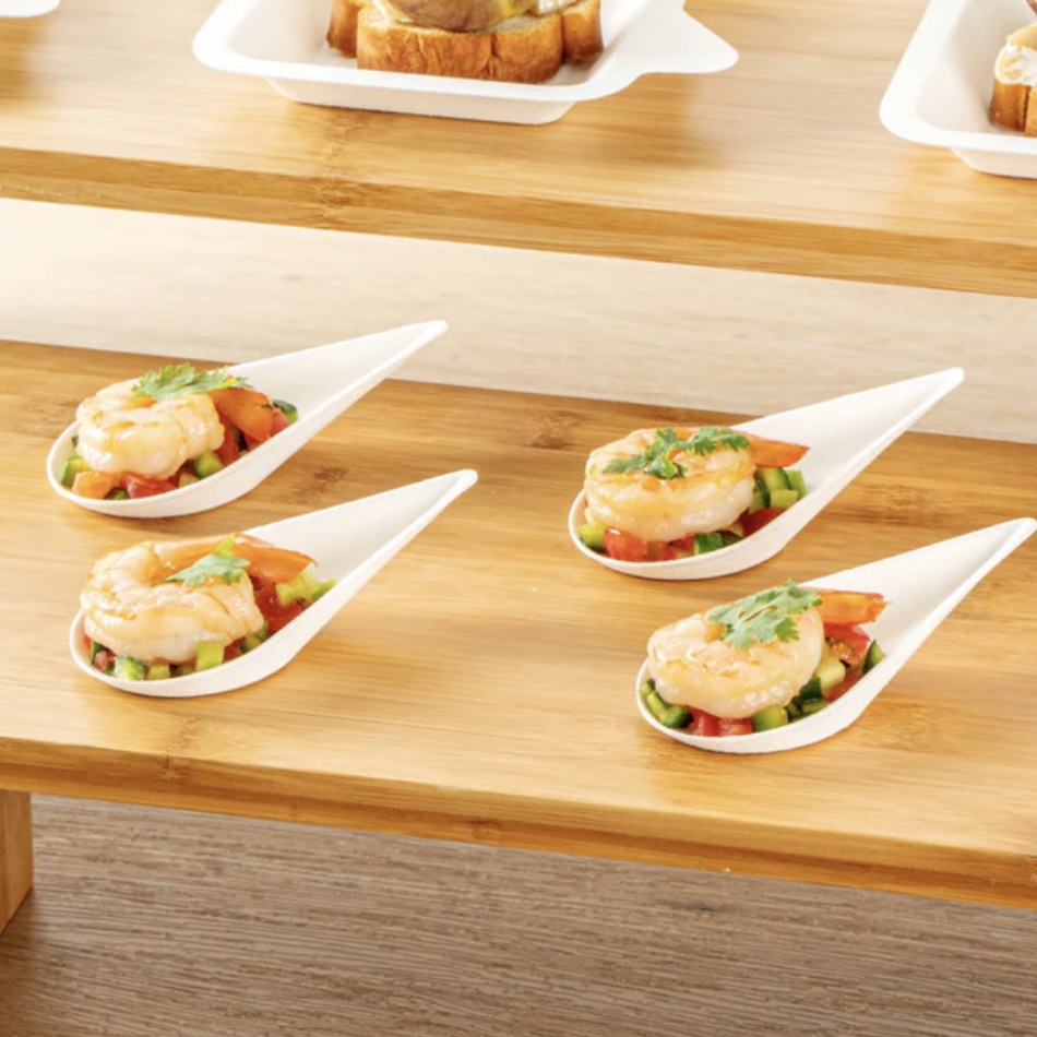 Presenteer uw heerlijke hapjes en amuses in onze suikerriet amuse bordjes. Suikerriet amuse bordje drop is druppelvormig en heeft een klein opstaand randje. Een perfect klein proeverij bordje om uw gerechtjes in te laten proeven op bijvoorbeeld horeca vakbeurzen. Onze duurzame amuse bordjes van suikerriet zijn plasticvrij en dus perfect voor consumptie ter plaatse op beurs, evenement of partij.