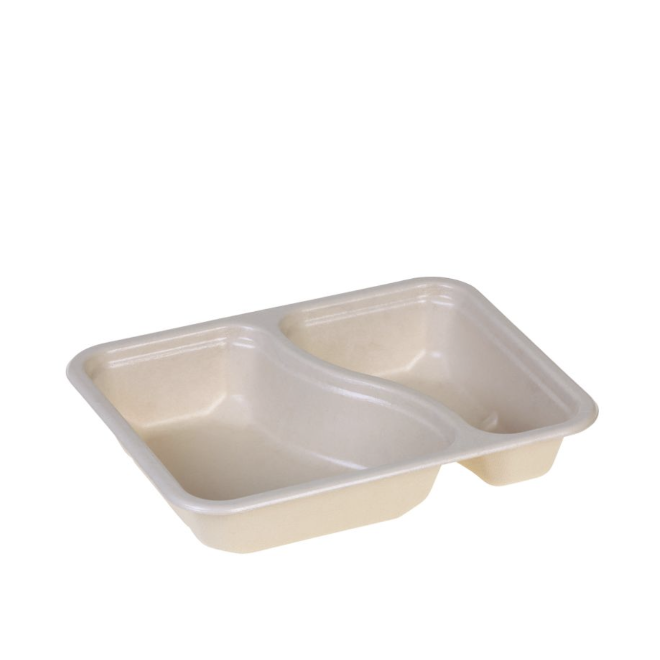 De suikerriet maaltijd schaal 2-vaks met zuurstof barrière is het alternatief voor CPET of PP maaltijdverpakkingen. Onze verpakking is de eerste composteerbare verpakking met zuurstof barrière. Door de zuurstofbarrière zijn de verpakkingen geschikt voor begassing met behulp van onze topsealmachines voor begassing. Wij leveren tevens bijpassende composteerbare topseal folie geschikt voor begassen. Naast zuurstofarm verpakken zijn onze verpakkingen tevens geschikt voor koelen, vriezen en opwarmen van uw maaltijden.