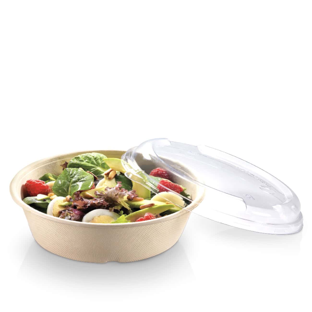 De suikerriet bowl 900ml rond is afsluitbaar met glasheldere PLA deksel, RPET deksel of suikerriet deksel. De doorzichtige PLA deksel is geschikt voor koelverse maaltijden en salades. De RPET deksel kan ook worden gebruikt voor warme take away maaltijden tot 54°C. Voor zeer hete gerechten bieden we suikerriet deksels aan. Deze isoleren goed zodat de maaltijd goed warm blijft. Maaltijdbowls voor takeaway van suikerriet geven uw gerechten een exclusieve, luxe uitstraling. Combineer suikerriet maaltijdbowl 900ml rond met hout bestek en papieren tassen.
